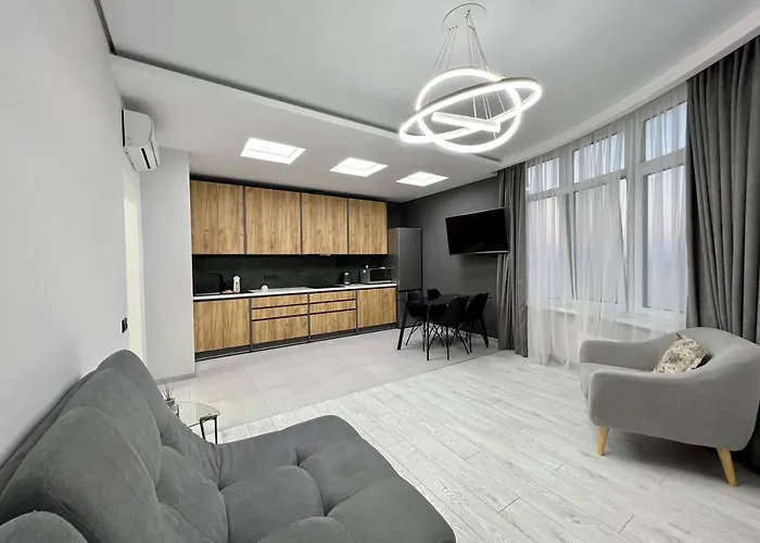 44-Pearl Minimalist Apartment Odessa de 55 m^2 est situé à moins de 2 km du Parc de la Victoire et à moins de 10 minutes de marche de la Plage d'Arcadia. Les clients voyageant en voiture peuvent profiter d'un bureau de change, ainsi que d'un stationnement privé d'une voiture disponible sur place.